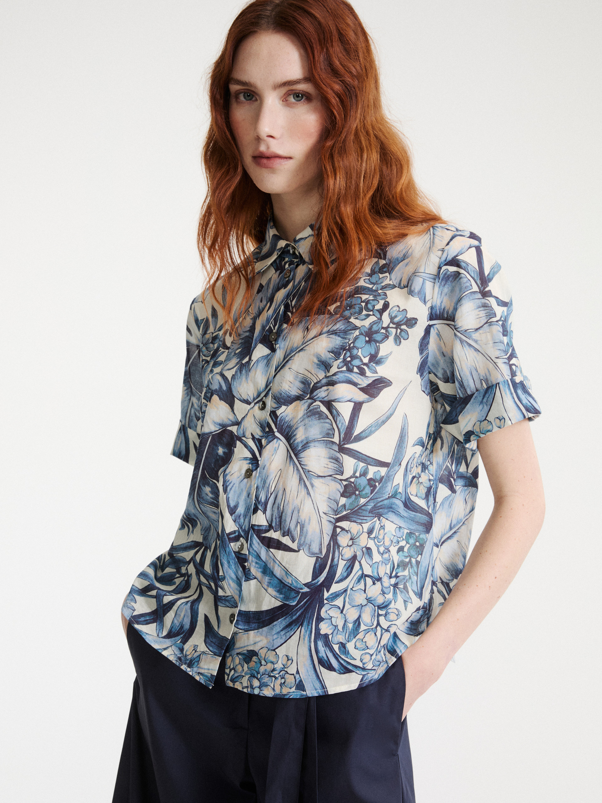 - Shirt in pure cotton muslin fabric